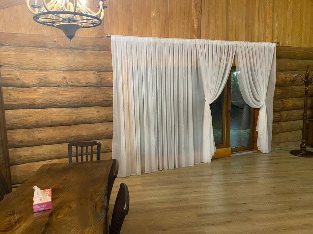 На первом этаже кухня-столовая, общий зал с раскладным диваном, спальня. Второй этаж - две спальные комнаты.