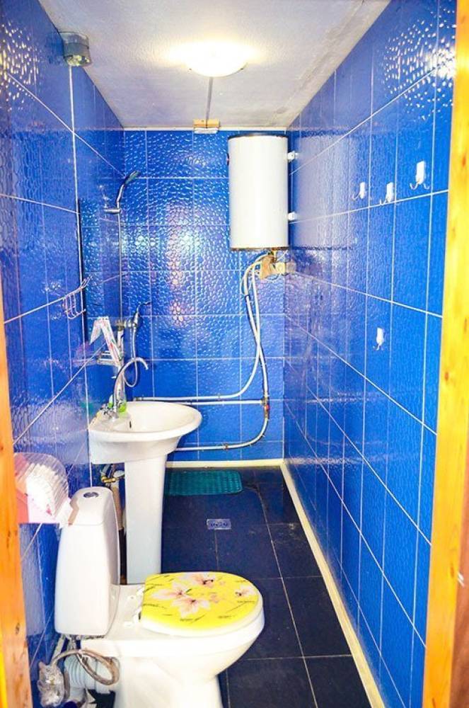 Санузел в одном из номеров (душ, туалет, раковина, холодная и горячая вода).