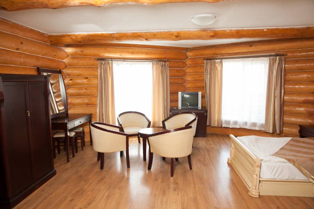 Для проживания предоставляются деревянные домики из круглого бревна и лафета по канадской технологии рубки, а также номера в капитальном корпусе. Постельное белье и другие принадлежности предоставляются.