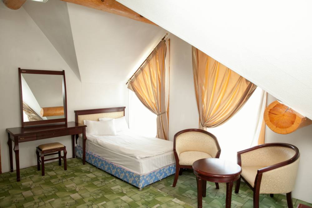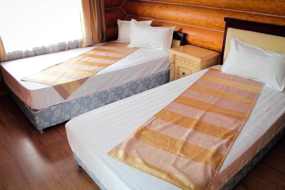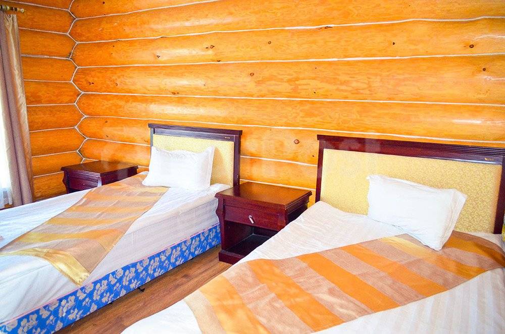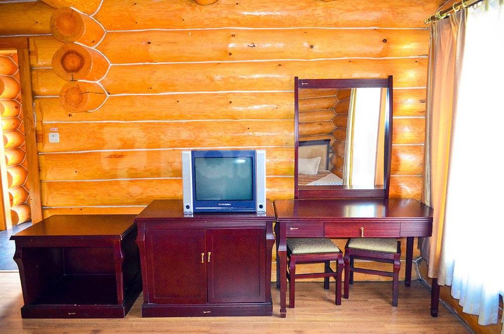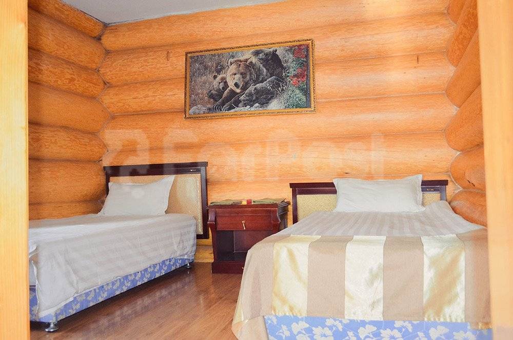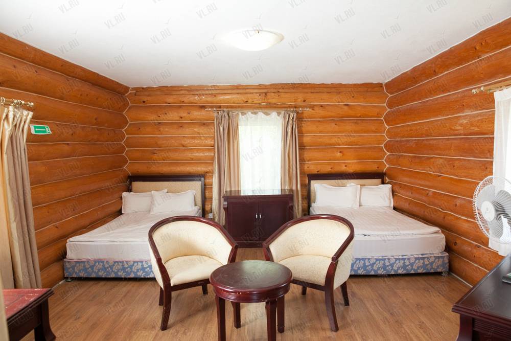 Для проживания предоставляются деревянные домики из круглого бревна и лафета по канадской технологии рубки, а также номера в капитальном корпусе. Постельное белье и другие принадлежности предоставляются.