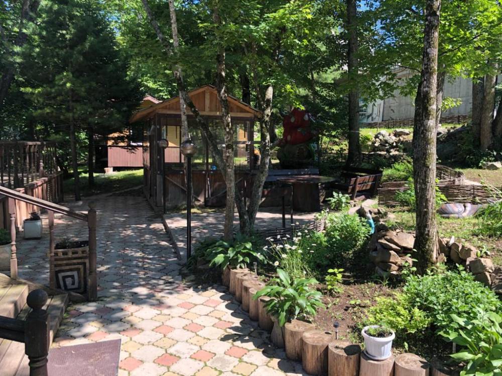 На территории: парковка, место для пикника, аренда кафе с камином. В зимнее время: каток, тюбинговые и лыжные трассы.