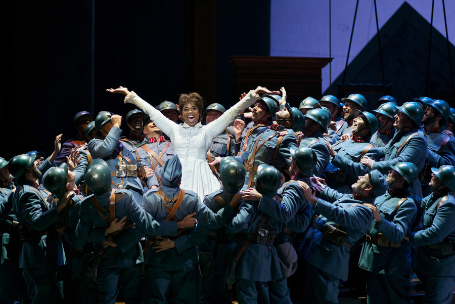 За режиссером Лораном Пелли давно закрепилась репутация мастера лирических комедий, и его прочтение «Дочери полка» только подтверждает ее. Перестроения стремительны, суматоха смешна, герцогиня напыщенна, на сцене присутствуют также танк и гордый галльский петух. Сценография Шанталь Тома вносит элементы гротеска, необходимые для совершенно неправдоподобного сюжета.