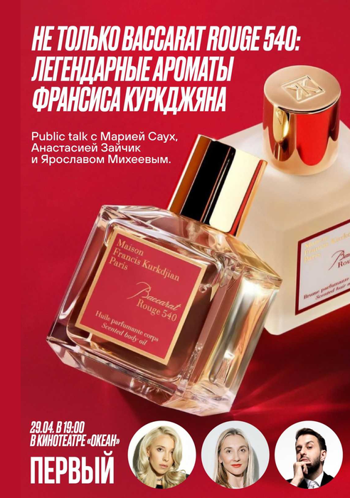В формате Public Talk основатель сети «ПЕРВЫЙ ПАРФЮМЕРНЫЙ» Мария Саух и бренд-директор Maison Francis Kurkdjian в России Анастасия Зайчик вместе с ведущим Ярославом Михеевым поговорят с гостями: