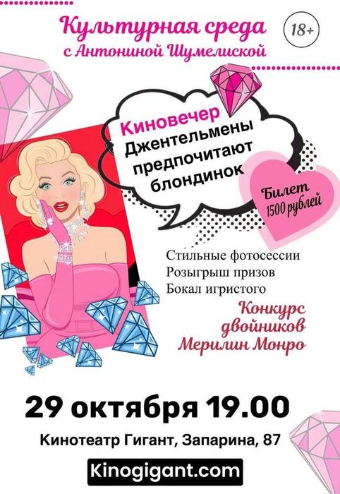 Киновечер. Джентльмены предпочитают блондинок. Культурная среда с Антониной Шумелиской