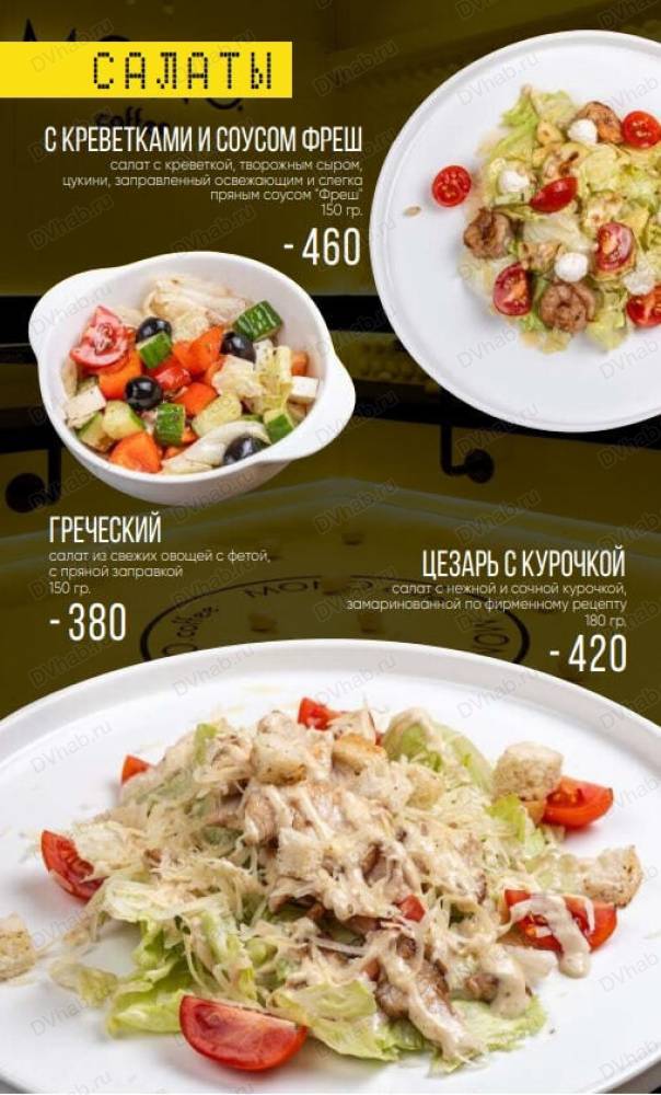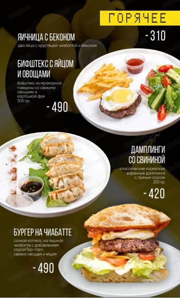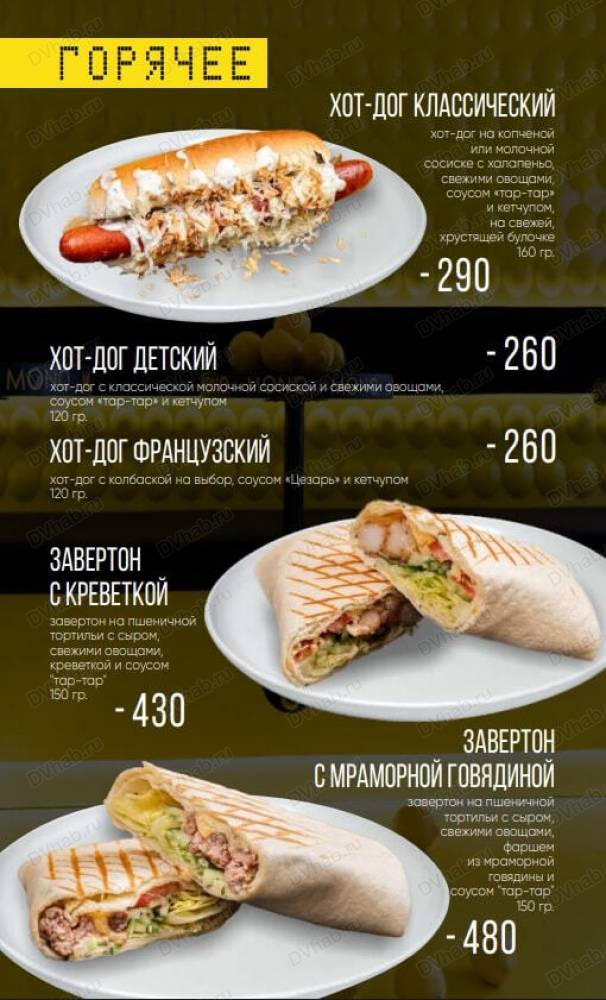 в описании есть актуальное меню