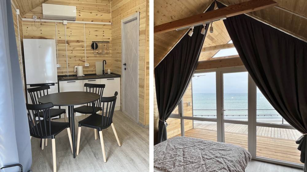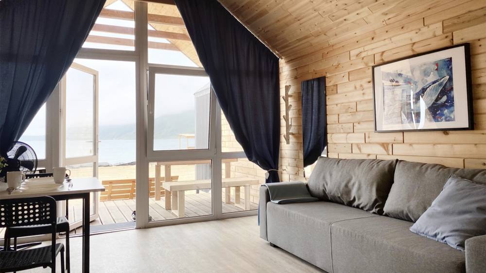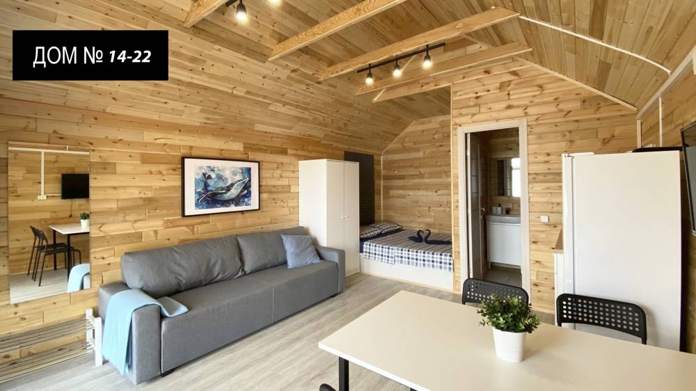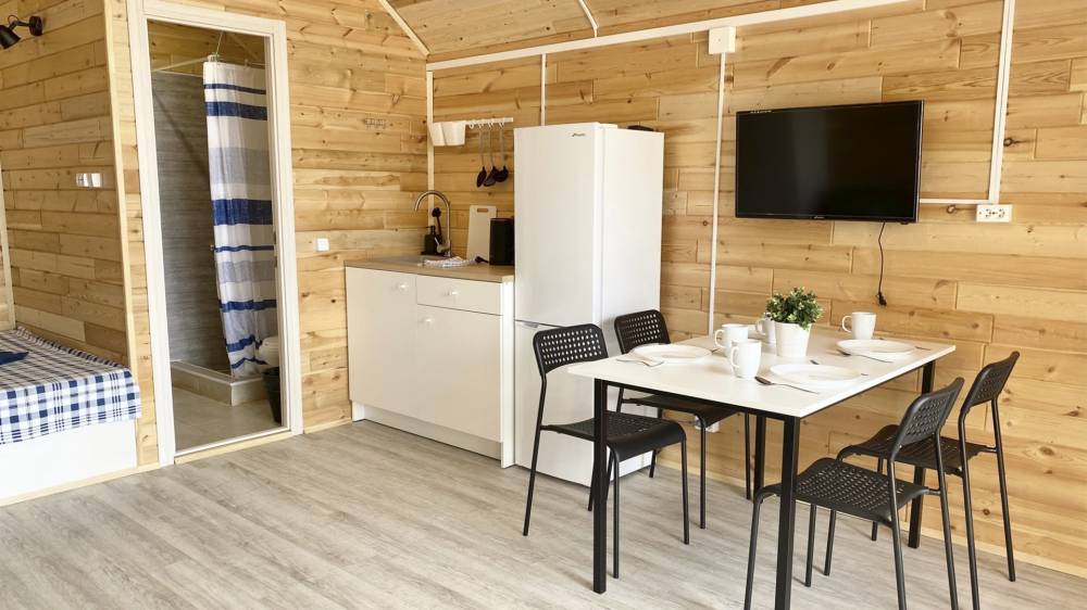 Для размещения предлагаются отдельно стоящие дома для каждой семьи с прилегающей территорией. Площадь дома 26 м2 и 32 м2, рассчитаны на 4 человек. К дому прилегает просторная терраса с мебелью. С дома и террасы открывается потрясающий вид на море. В домике есть все необходимое для полноценного и уютного проживания: двуспальная кровать, раскладной диван, стол и стулья, шкаф для одежды, кондиционер, холодильник, телевизор, чайник, кухня и вся необходимая посуда (кастрюли, сковорода, тарелки, кружки и столовые приборы. В каждом домике свой санузел с душевой, унитазом и раковиной, горячее и холодное водоснабжение. Территория базы огорожена забором.