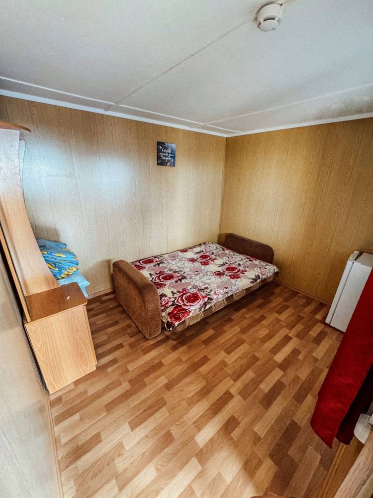 Двуспальный раскладной диван, небольшой холодильник, телевизор, зеркало, шкаф. Предоставляются газовые плиты (баллонны нужно привозить с собой), посуда выдается по запросу.