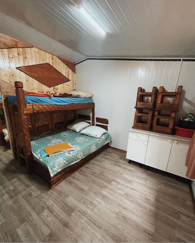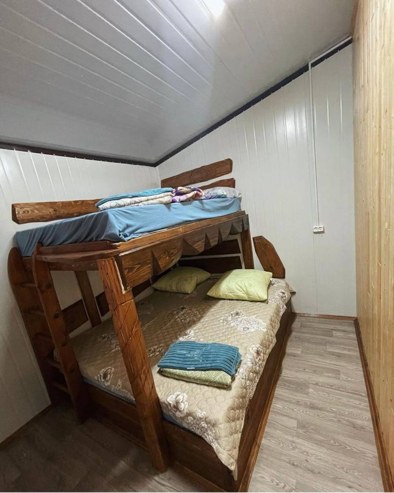 В спальнях: 2 двуспальные кровати, двухъярусные кровати.