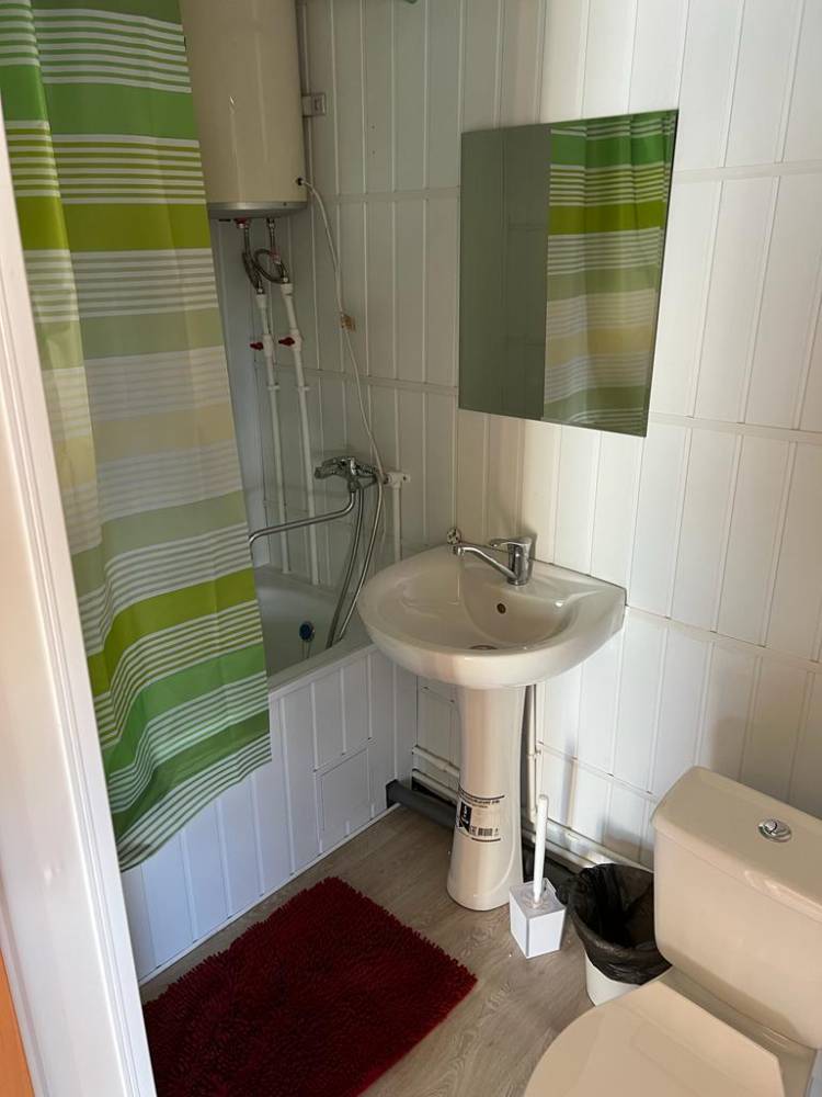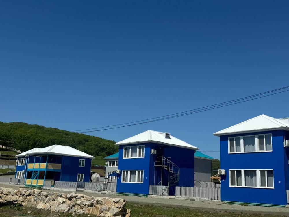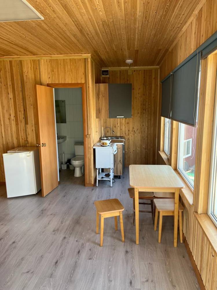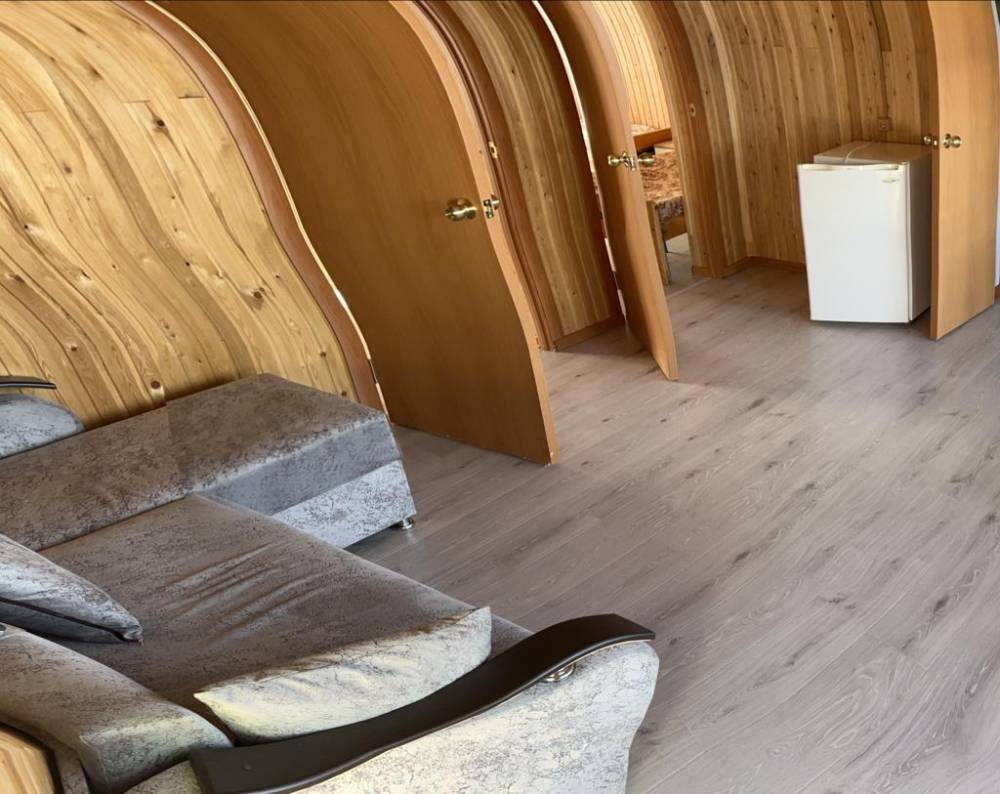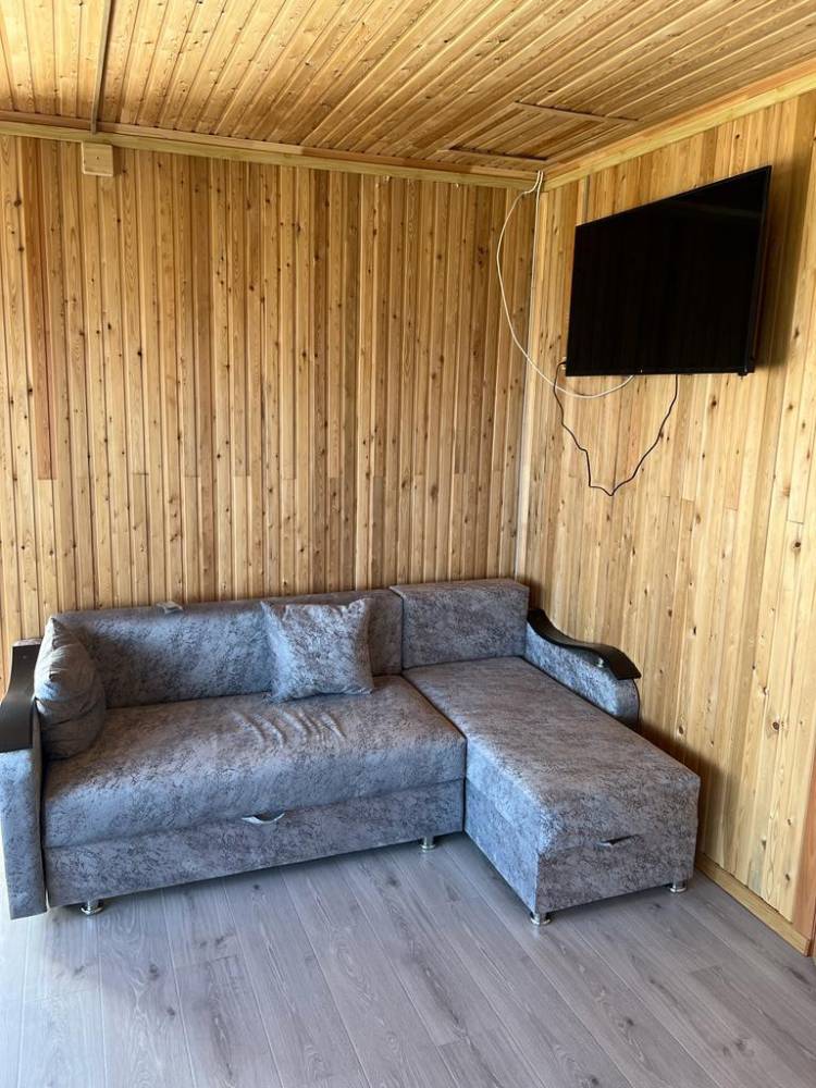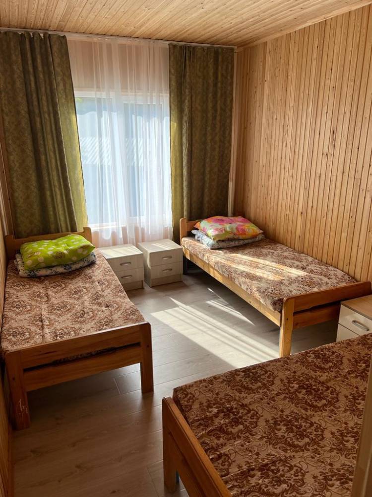 Этаж дома включает в себя: кухня-студия и две комнаты. В одной комнате двуспальная кровать, в другой комнате три одностпальные кровати. На кухне диван - раскладывается. Кондиционер, телевизор, холодильник. Своя огороженная территогрия и мангальная зона с беседкой у каждого этажа.