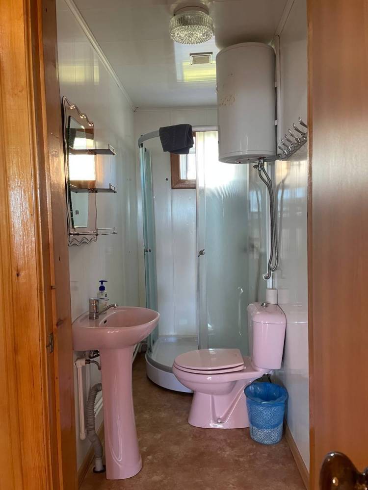 Санузел (унитаз, раковина, холодная и горячая вода) в домике. Также на территории базы отдыха имеется санитарный блок - благоустроенные туалеты, летние души.