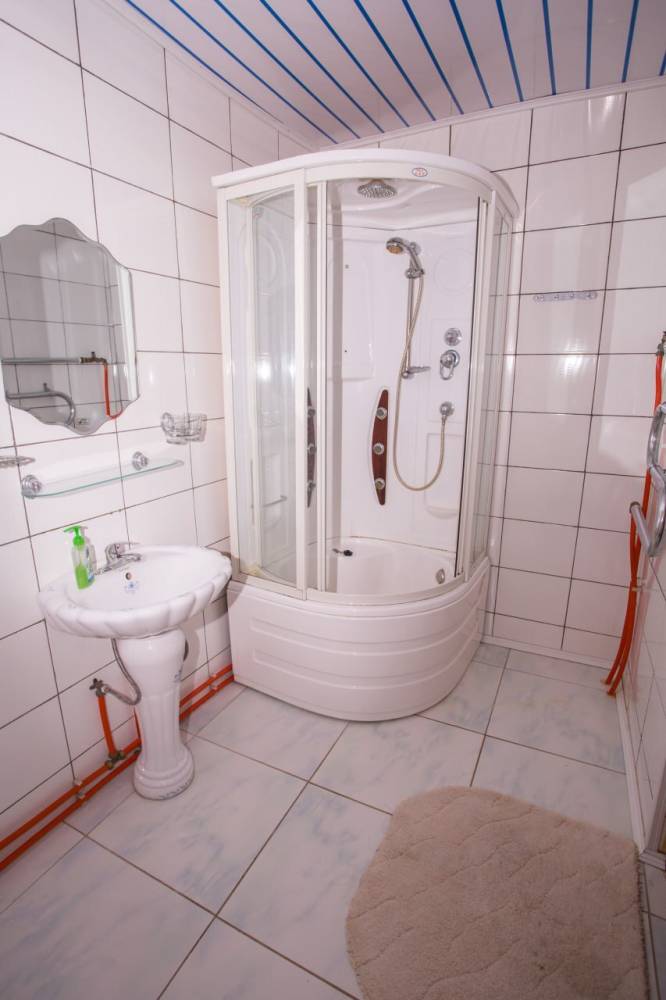 4 отдельных номера с двухспальными кроватями с возможностью установки 2 дополнительных места, общая трасса, большой холл и камин.