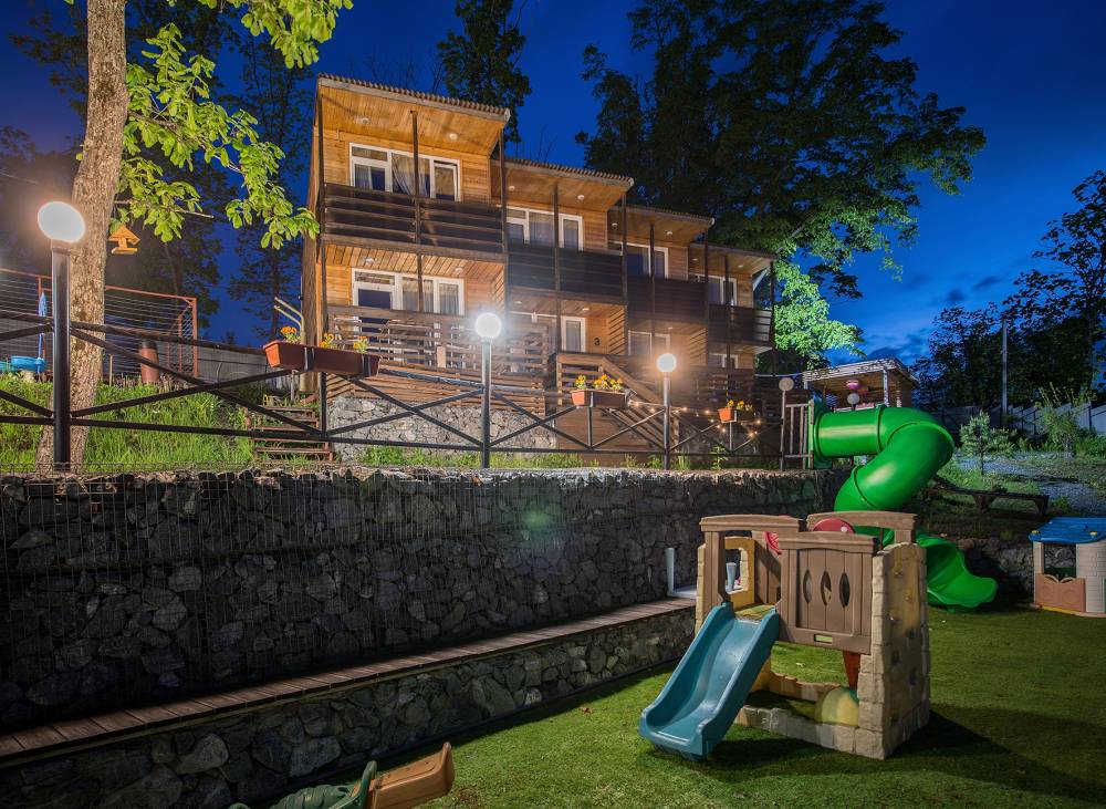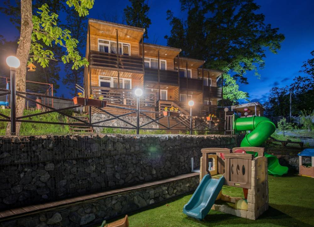 На территории есть охраняемая парковка, детская площадка, батут, шезлонги, беседки и мангалы (бесплатно), детский и взрослый бассейны с подогревом, контактный зооуголок.