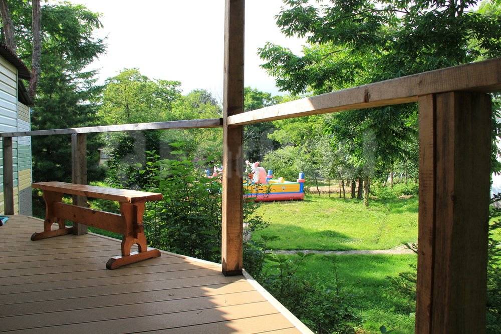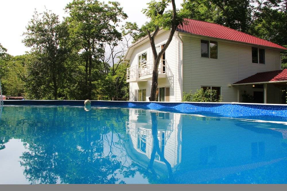 На территории есть места для пикника, детская площадка (надувной батут - площадь 24 кв.м), четыре беседки с мангалами. Также на территории имеется большая застекленная беседка - мангал с вытяжкой. Бильярд, настольный теннис, три бассейна с пресной водой - детский и взрослый, и бассейн с подогревом.