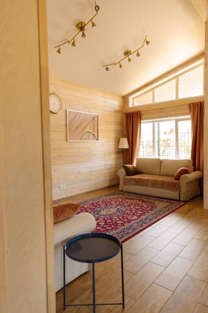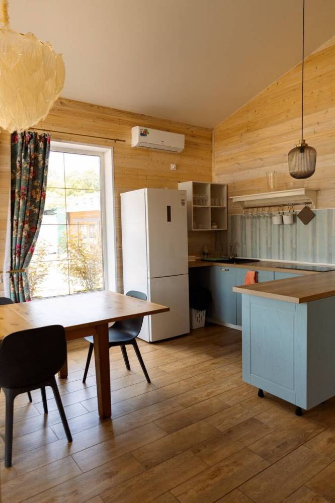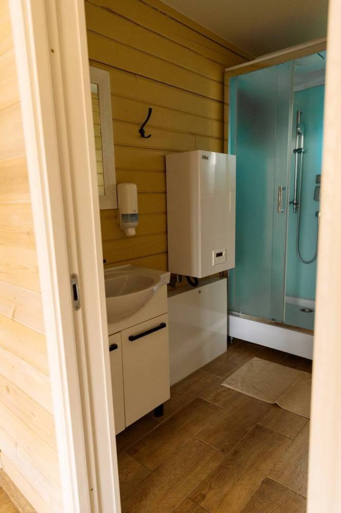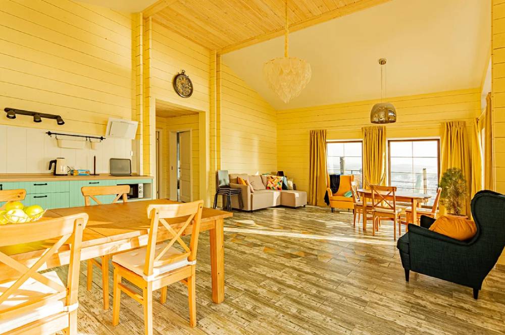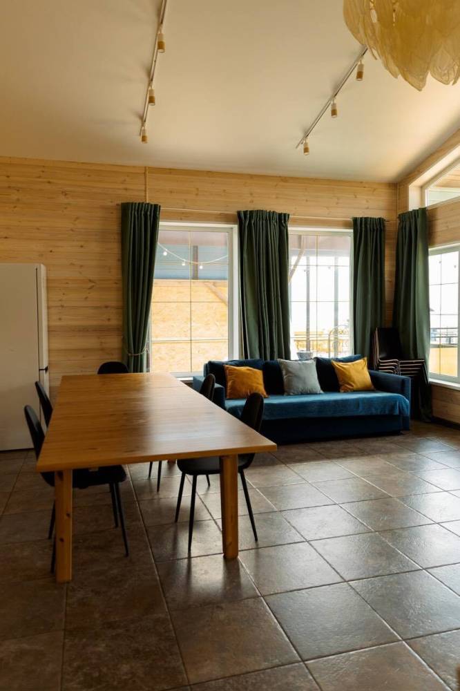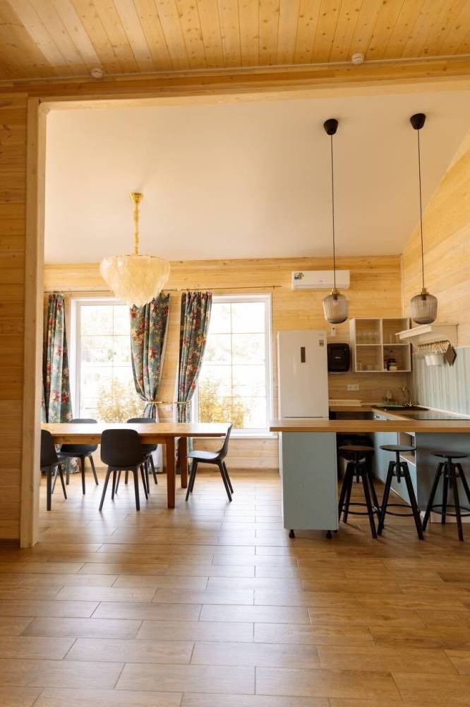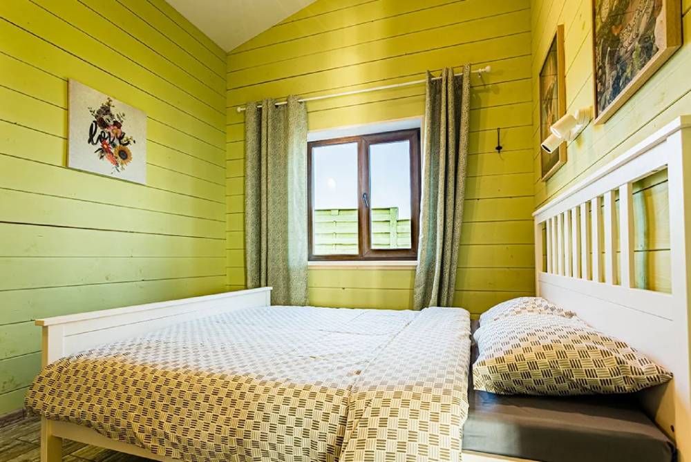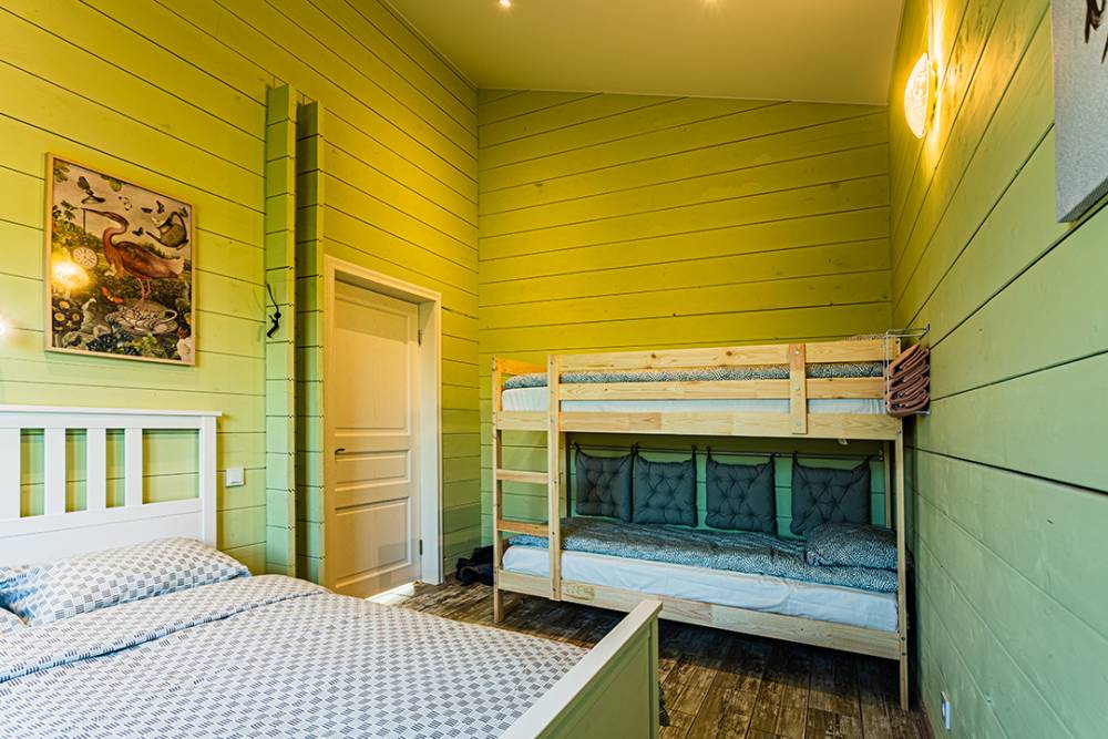 Для проживания предоставляются 12-местные эко-дома и 6-местные дома "Альфа-хаус", оборудованные спальными местами, бытовой техникой, кухонной зоной, благоустроенным санузлом.