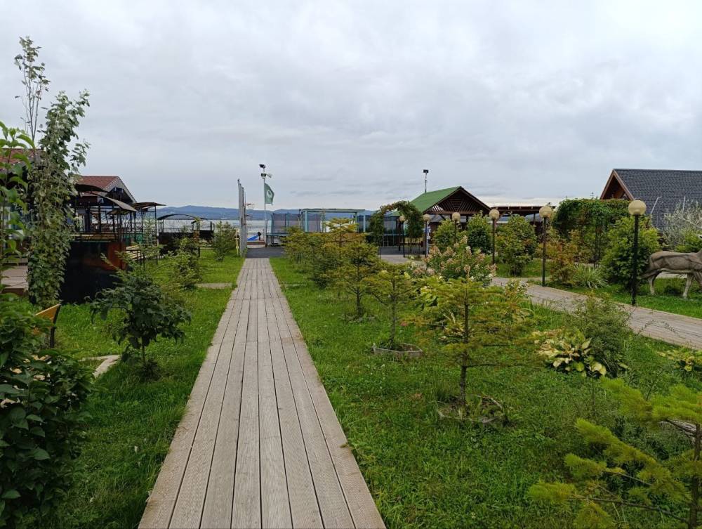 В качестве услуг: детские площадки, бассейн, зимние и летние активные развлечения, беседки, баня, инвентарь для барбекю, прокат вейкбордов и SUP-досок.