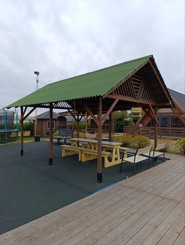 Дом на 10-12 человек площадью 80 м. кв. с террасой и мангальной зоной.