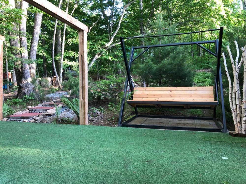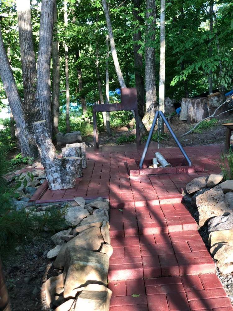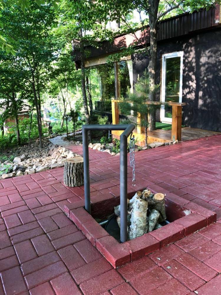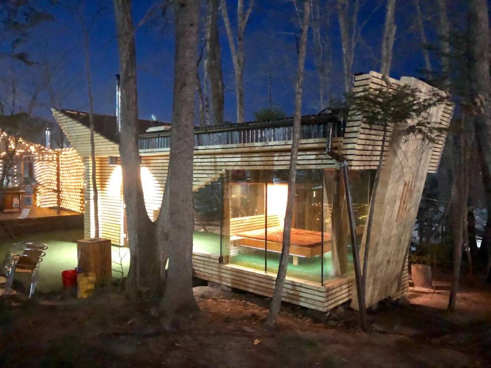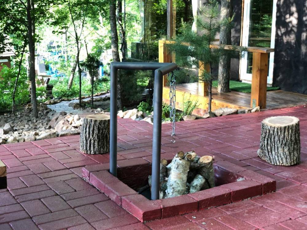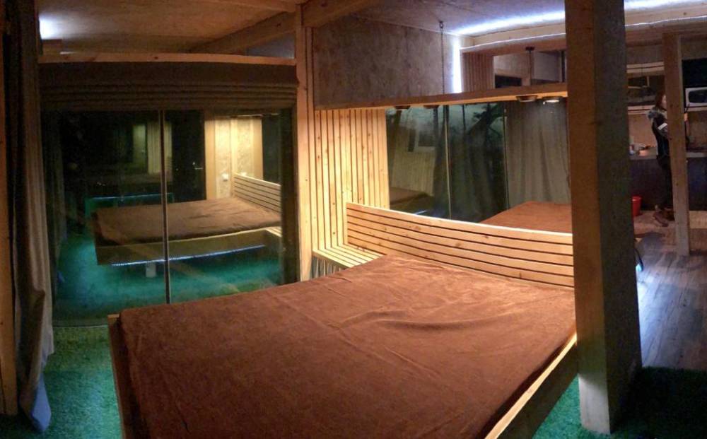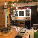 В домике есть электричество, вода (хол., гор.), туалет, душевая кабина, дровяной камин, кухонный гарнитур, 3 кровати, микроволновка, портативная газовая печка, чайник, холодильник и кухонная утварь.