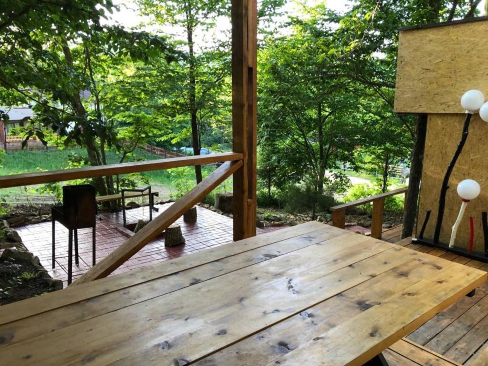 Рядом с домиком расположена мангальная зона, где можно приготовить шашлык, а так же терраса, на которой можно накрыть большой стол в солнечную погоду.
