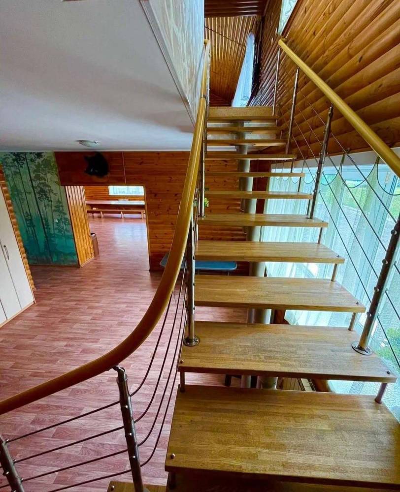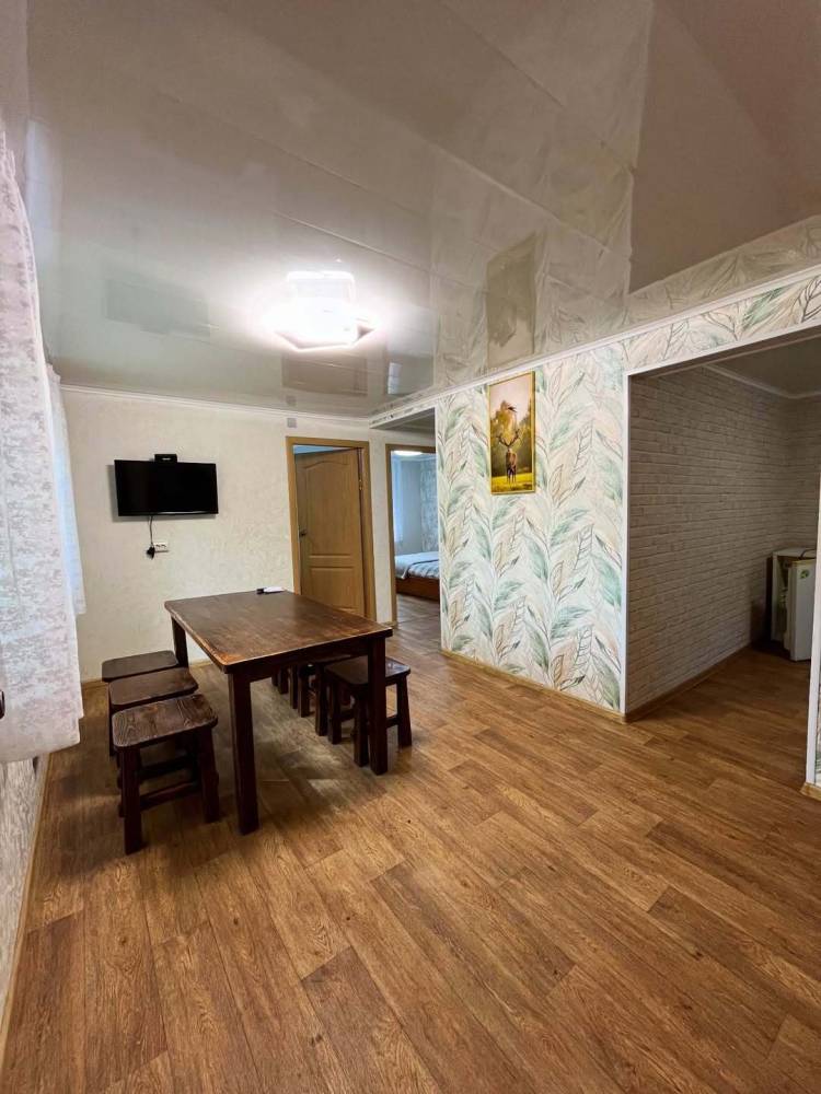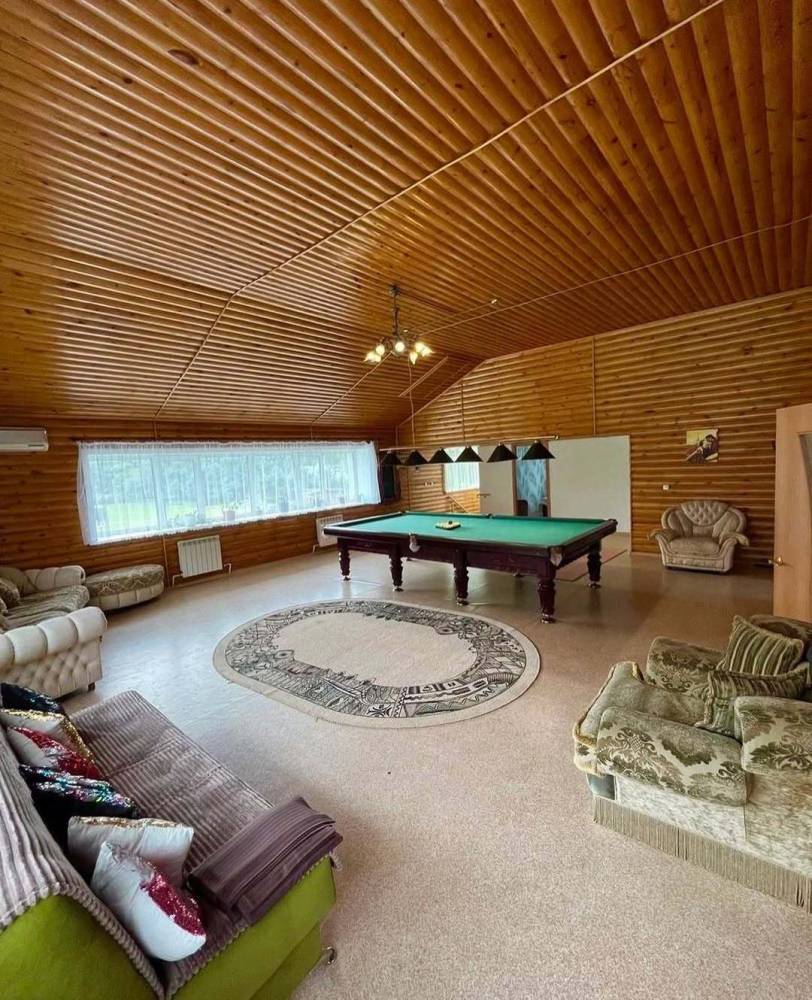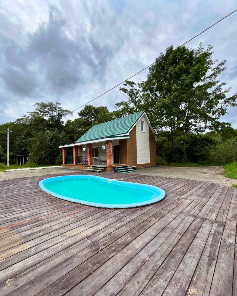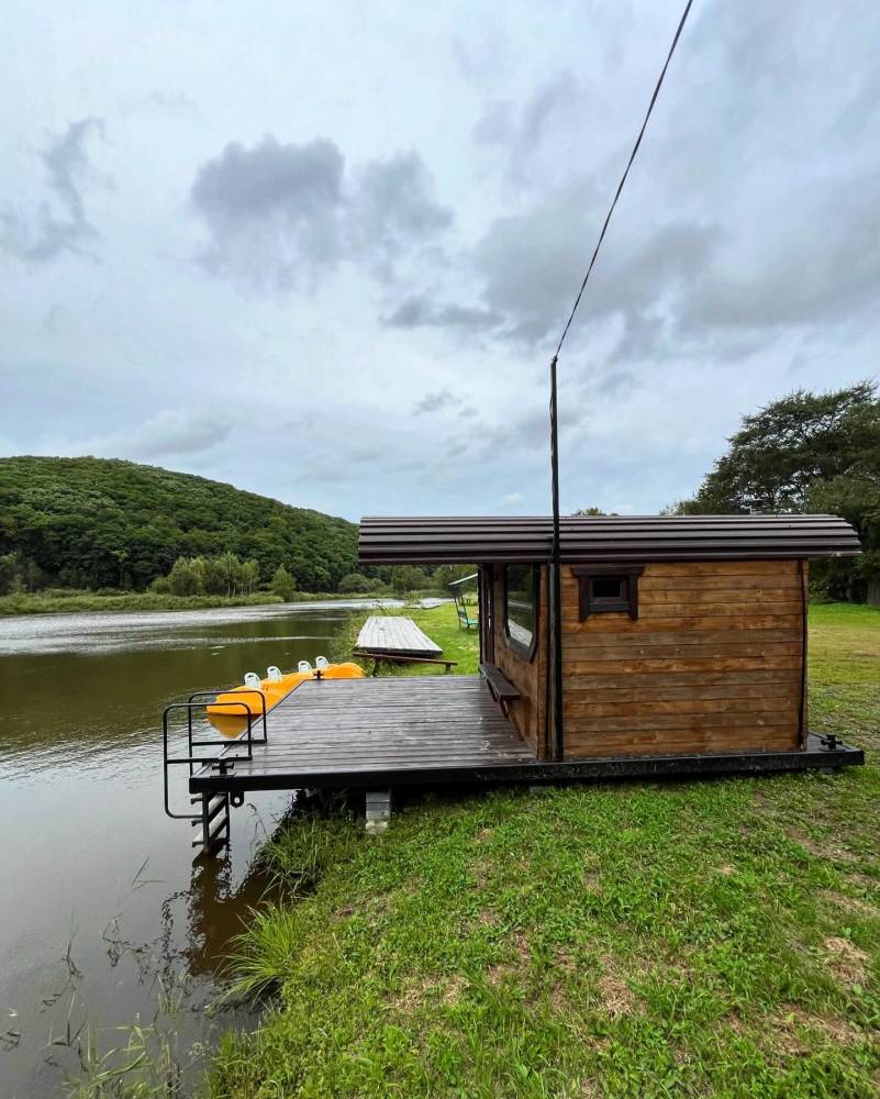 На территории базы отдыха размещен деревянный 10-местный дом. Возле дома есть место для отдыха (столик и мангал).