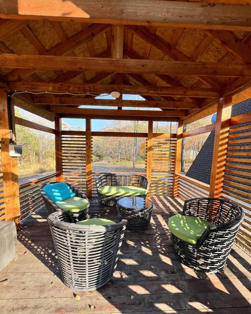 В каждом домике есть туалет. Возле домиков имеется место для отдыха. Постельное белье и постельные принадлежности предоставляются в каждом домике.