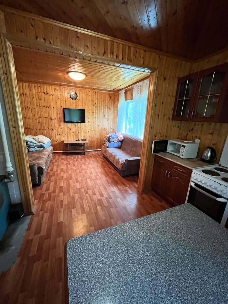 В доме гостиная, в которой 2-спальный диван, кресло, телевизор с кабельным телевизором, камин. И три спальные комнаты: в одной 2-спальный диван, во 2 - две 2-спальные кровати, в 3 - 2-спальный диван. Также в доме есть кухня и печь - отапливать можно самостоятельно, либо рабочими. Постельное белье и постельные принадлежности предоставляются.