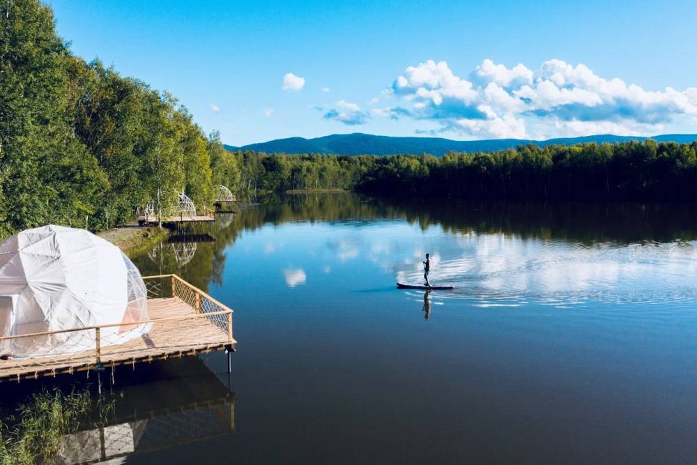 Глэмпинг-отель "Шале на воде" расположен в Хабаровском крае, на территории Большехехцирского заповедника.