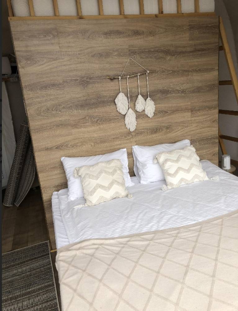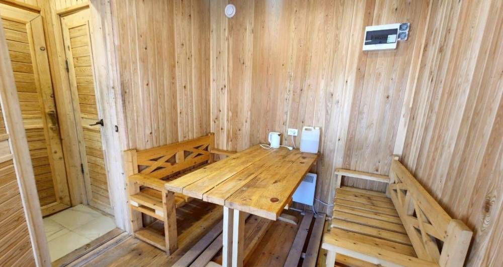В шале: двуспальная кровать (ее можно трансформировать в две односпальных) с удобными матрасами, теплые полы, кондиционер, большой обеденный стол, чайник. Подключен Wi-Fi