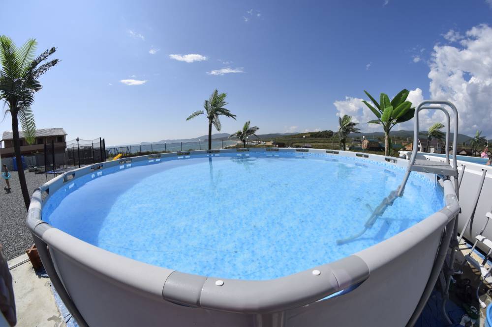 На территории есть парковка, бассейн, детская площадка.