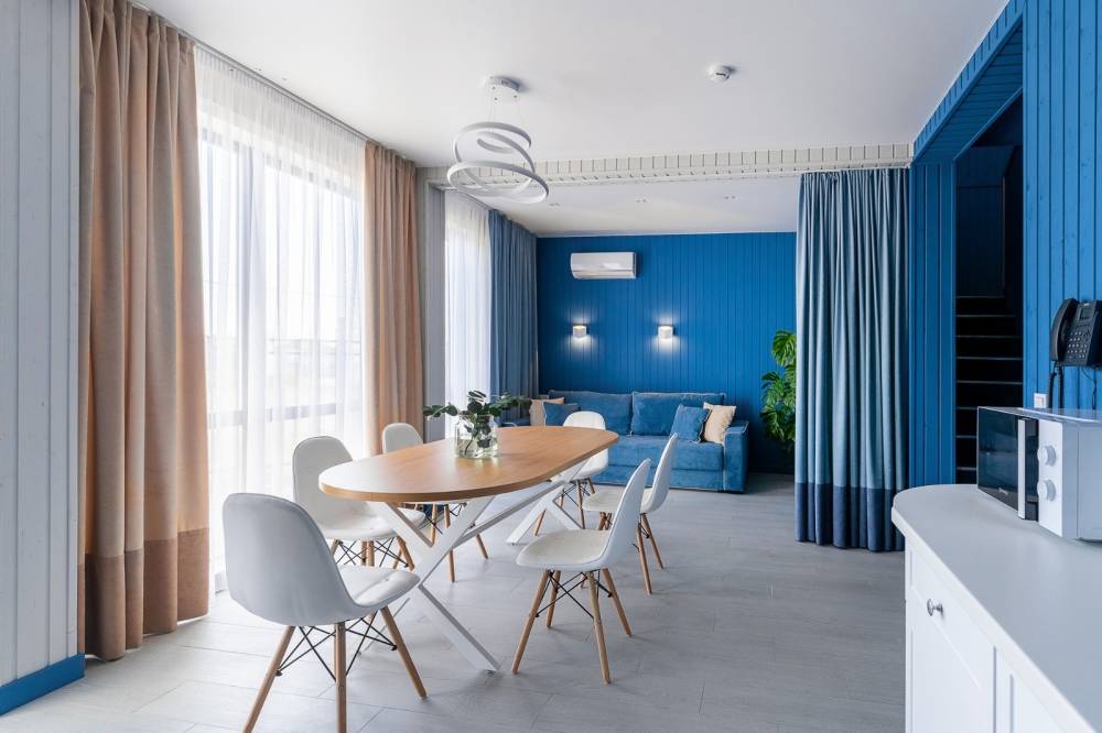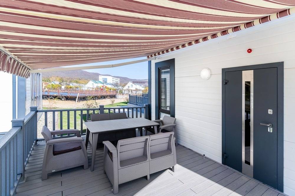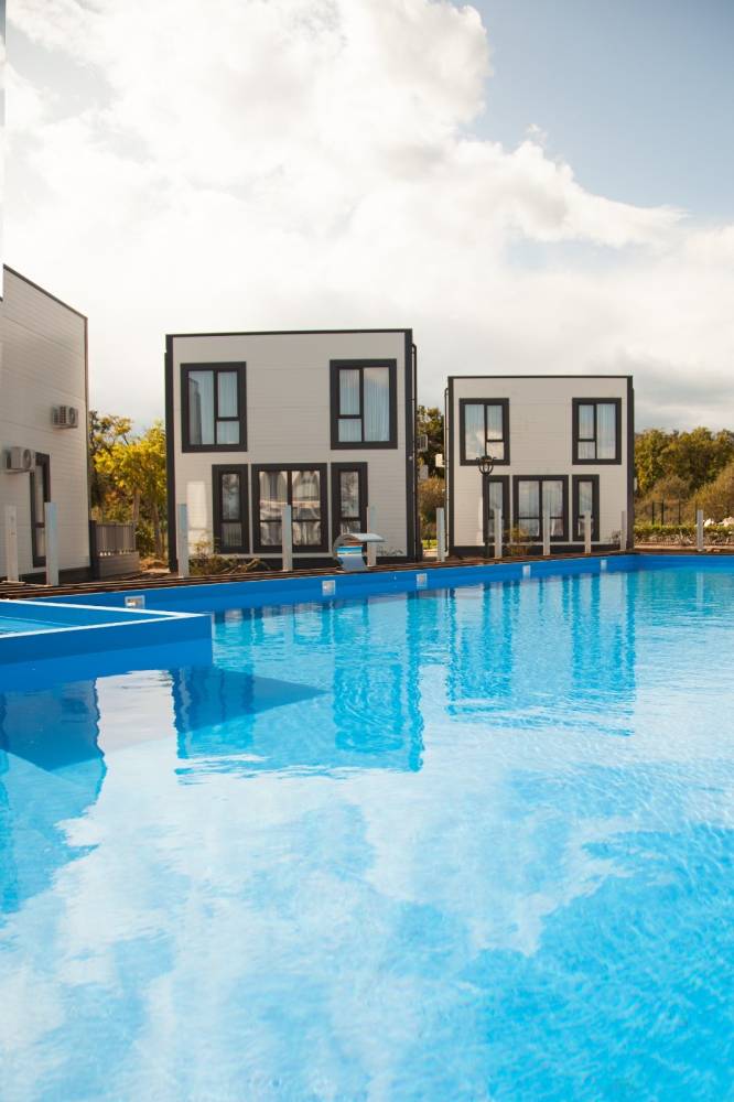 Для проживания предоставляются новые двухэтажные таунхаусы, вместимостью 6-8 человек. У каждого таунхауса веранда для отдыха и вид на море.