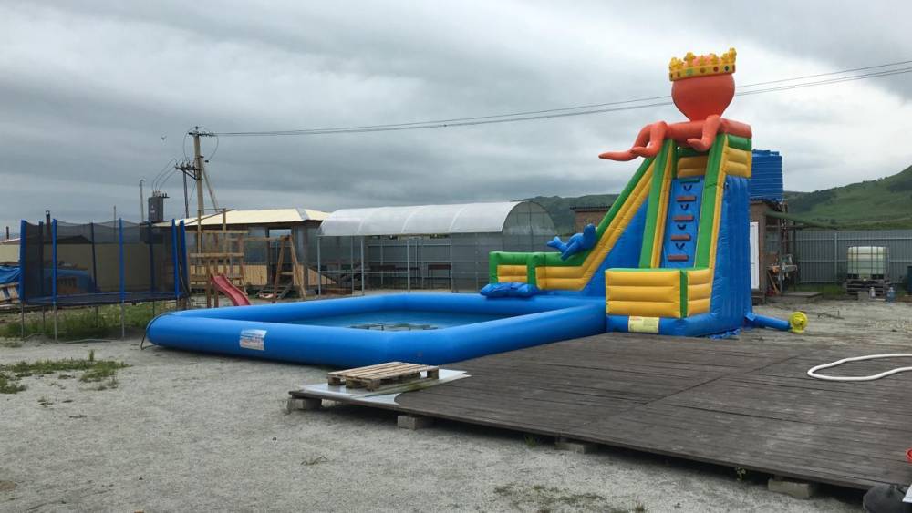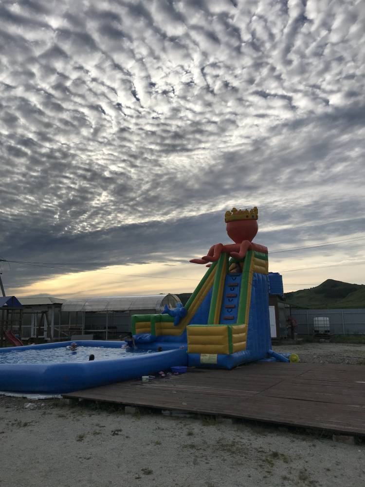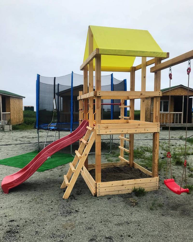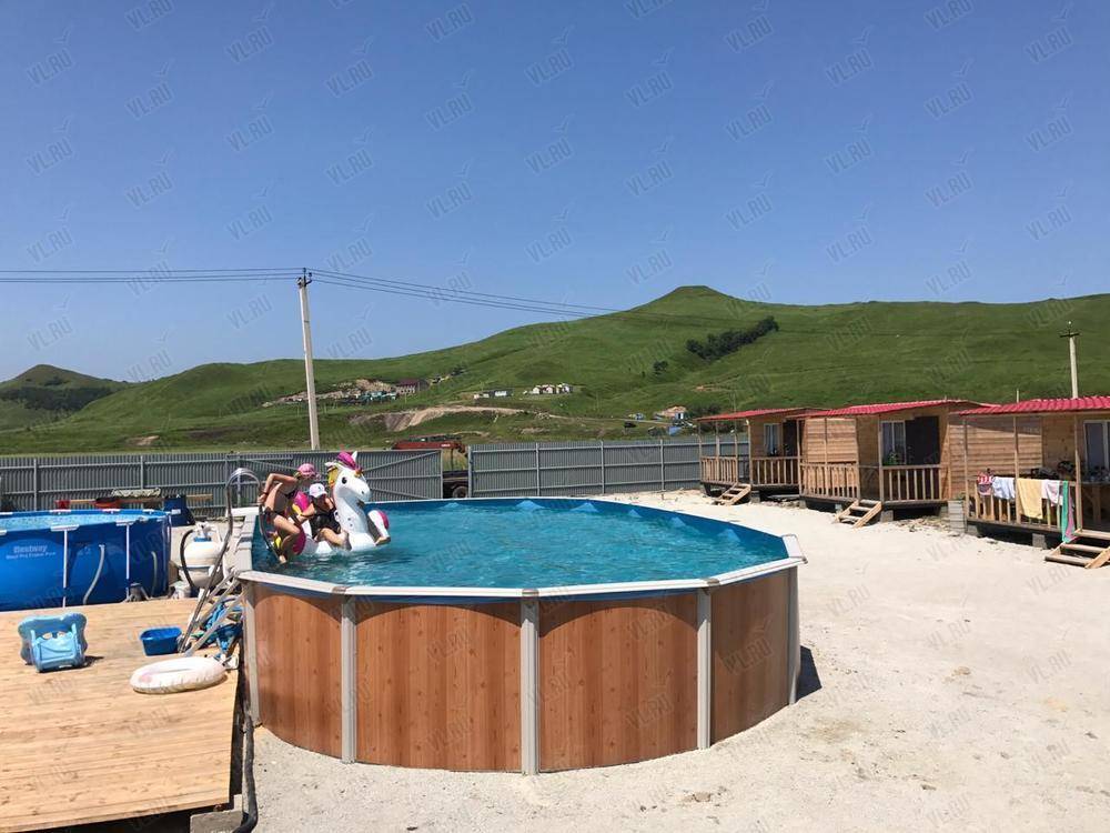 На территории благоустроенный санитарный блок, детские развлечения (бассейн, площадка, батут), взрослый бассейн, парковка, беседка, мангальная зона. Возможна организация рыбалки.