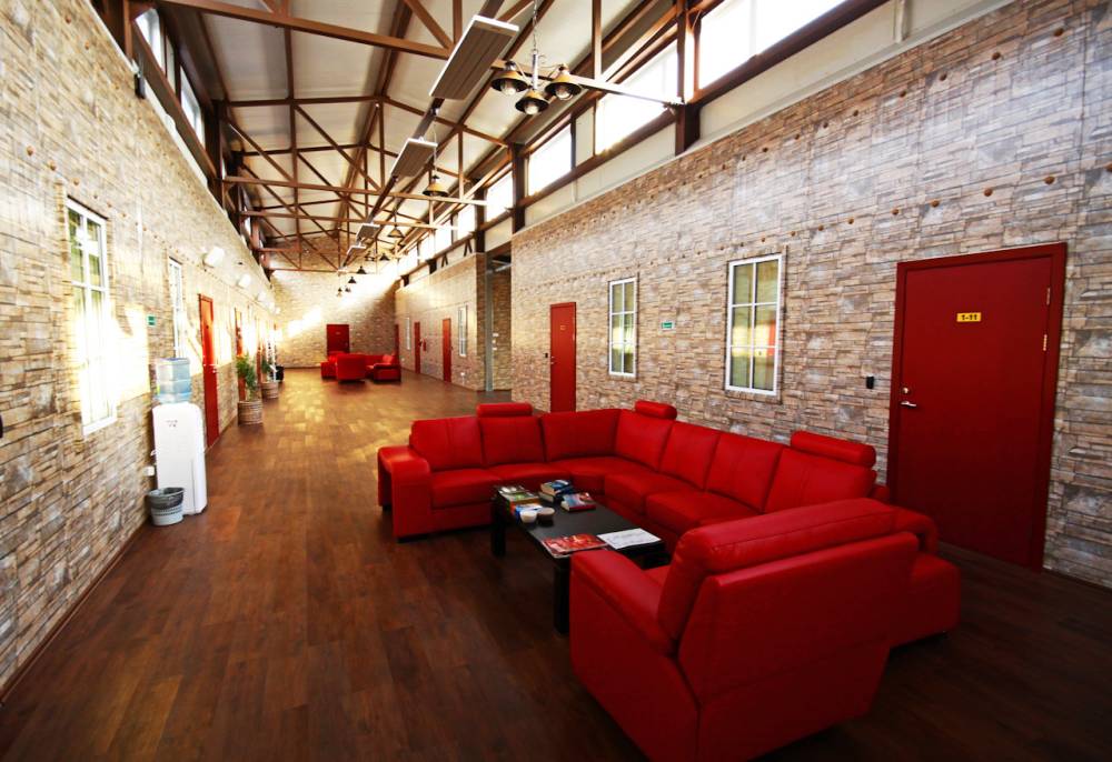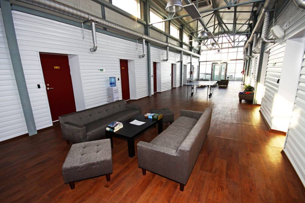 Сразу за гостиничным комплексом расположена территория одноэтажных модульных домиков. В холле каждого модуля есть стол, диваны для отдыха. На территории гостиничного комплекса работает Wi-Fi.