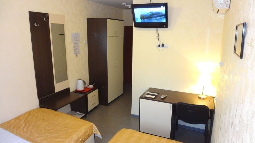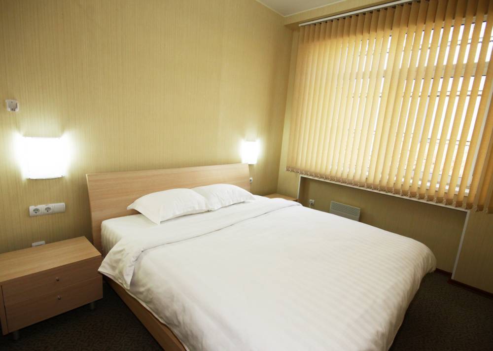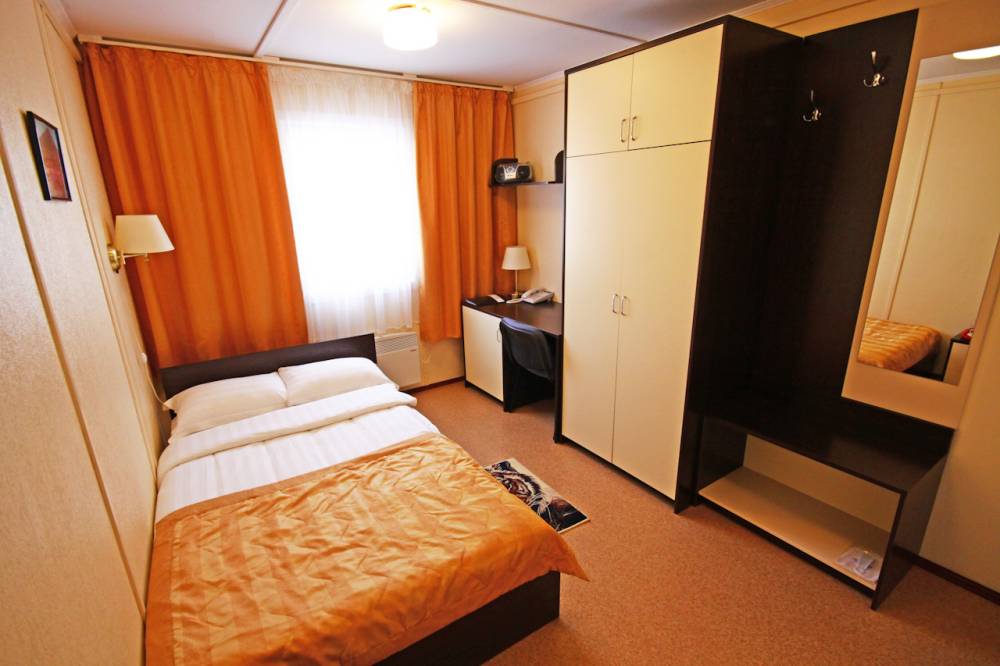 Гостиничный корпус - пятиэтажное здание, на 1 этаже располагается комплекс "Русская баня", столовая. На 2-5 этажах - номера различного уровня комфортности. Все номера оборудованы спальными зонами, мебелью, техникой (холодильник, телевизор, чайник, кондиционер), благоустроенным санузлом.