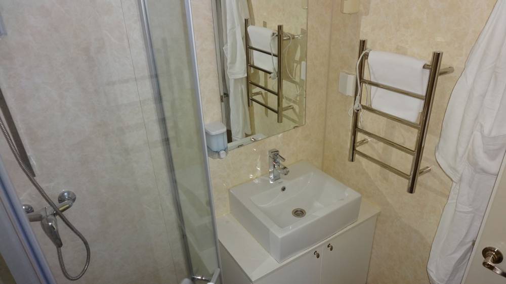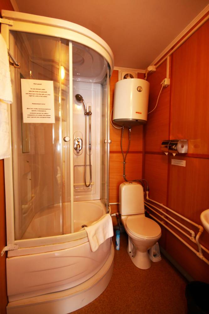 В номере отдельная ванная комната с душевой кабиной и необходимыми туалетными принадлежностями.